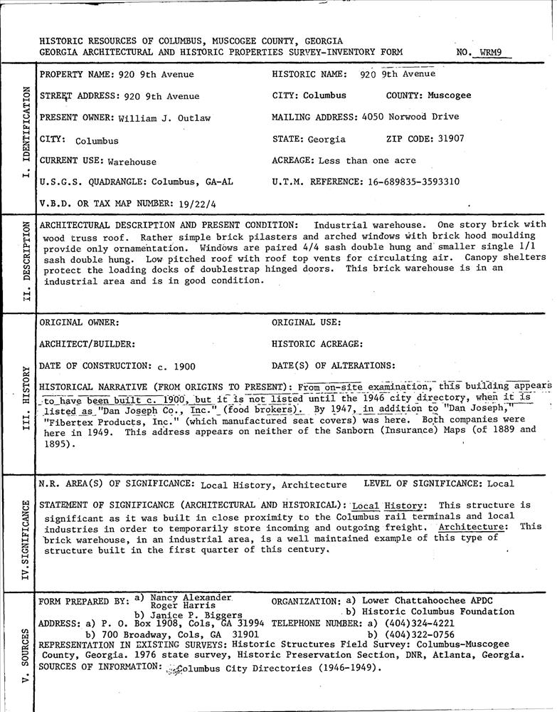 Columbus ; 920 Ninth Ave.