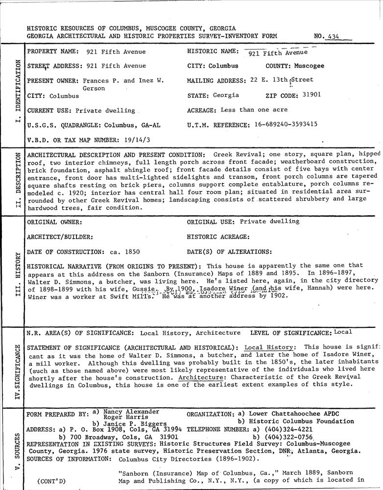 Columbus ; 921 Fifth Ave.