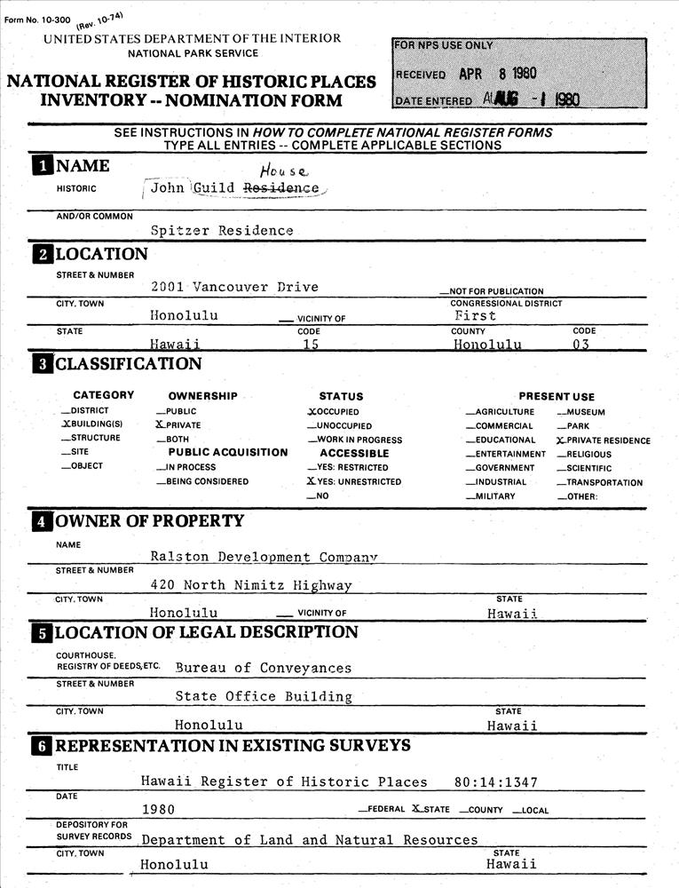 Honolulu ; 2001 Vancouver Dr.