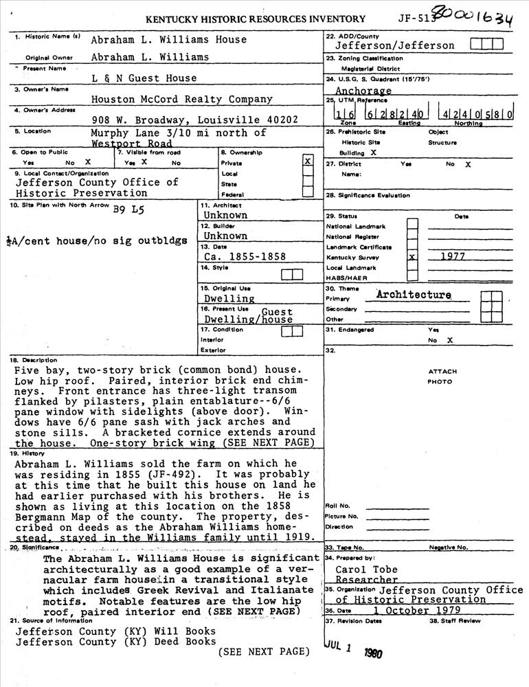 Williams, Abraham L., L & N Guest House