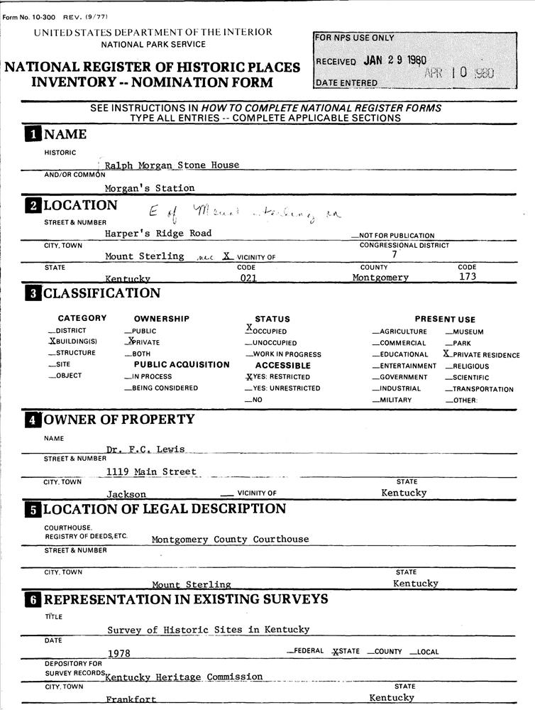 Mount Sterling ; E of Mount Sterling on Harper's Ridge Rd.