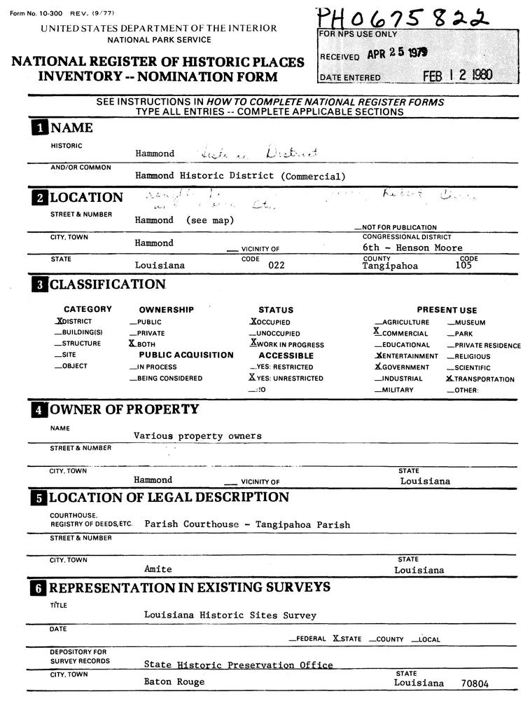 Hammond ; Roughly bounded by Magnolia, Robert, Cherry, and Morris Sts.