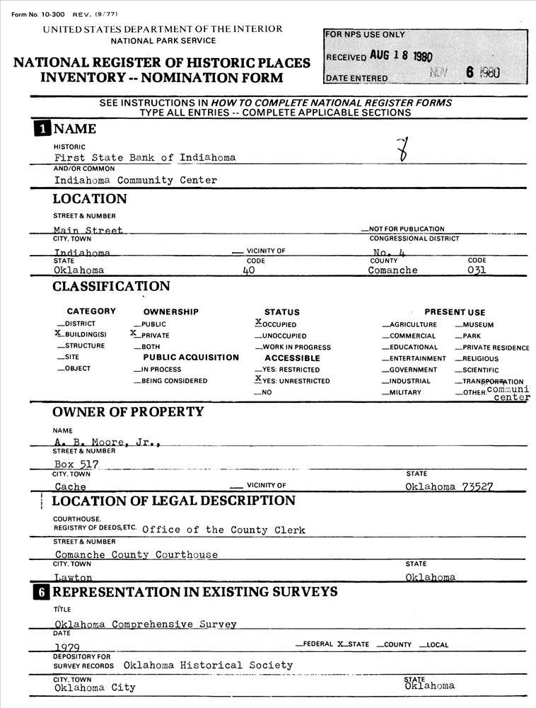 First State Bank of Indiahoma