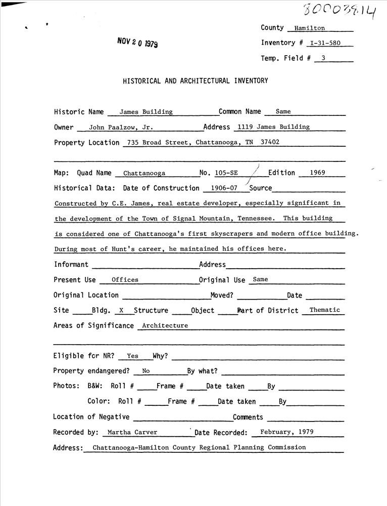 Hunt, Reuben H., Buildings in Hamilton County TR