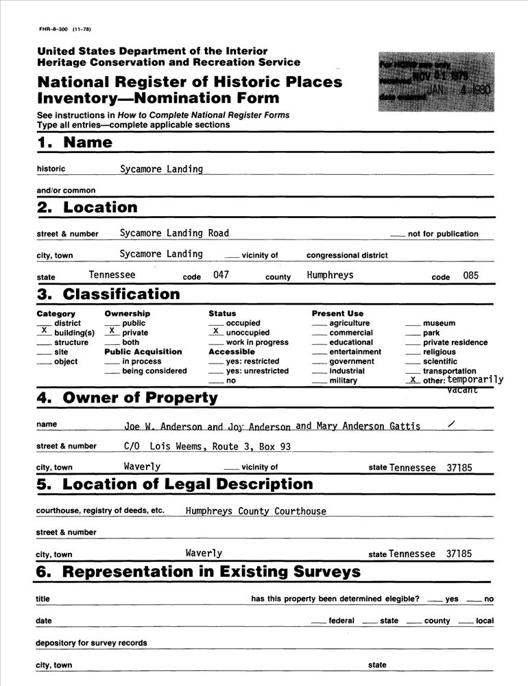 Sycamore Landing ; Sycamore Landing Rd.