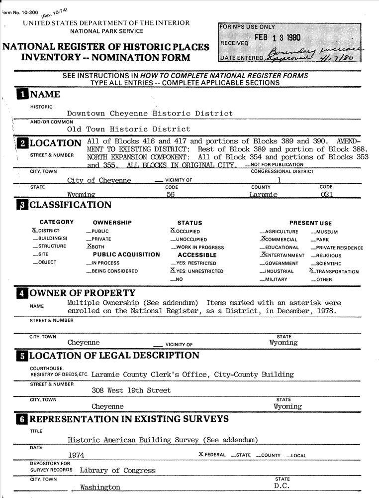 Cheyenne ; Roughly bounded by 17th and 18th Sts., Pioneer and Carey Aves., also along Central Ave. and 17th St.