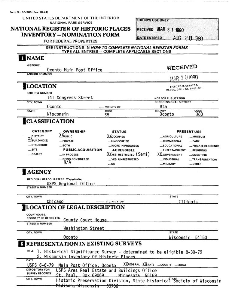 Oconto Main Post Office