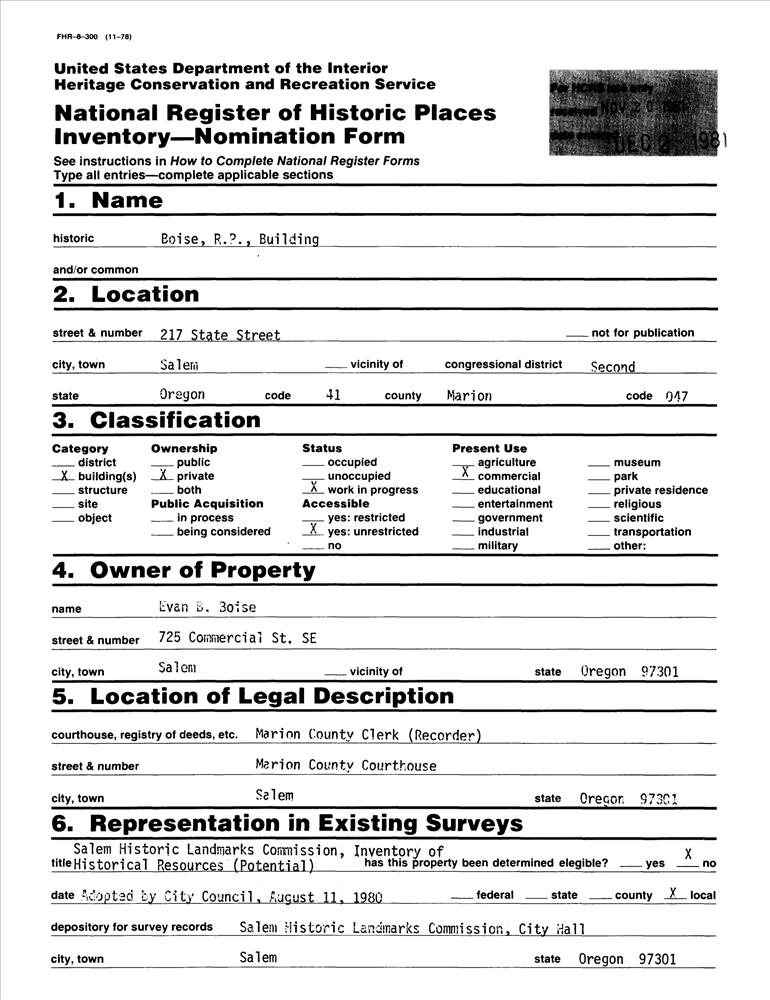 Boise, R. P., Building