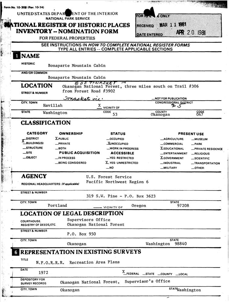 Tonasket ; E of Tonasket in Okanogan National Forest