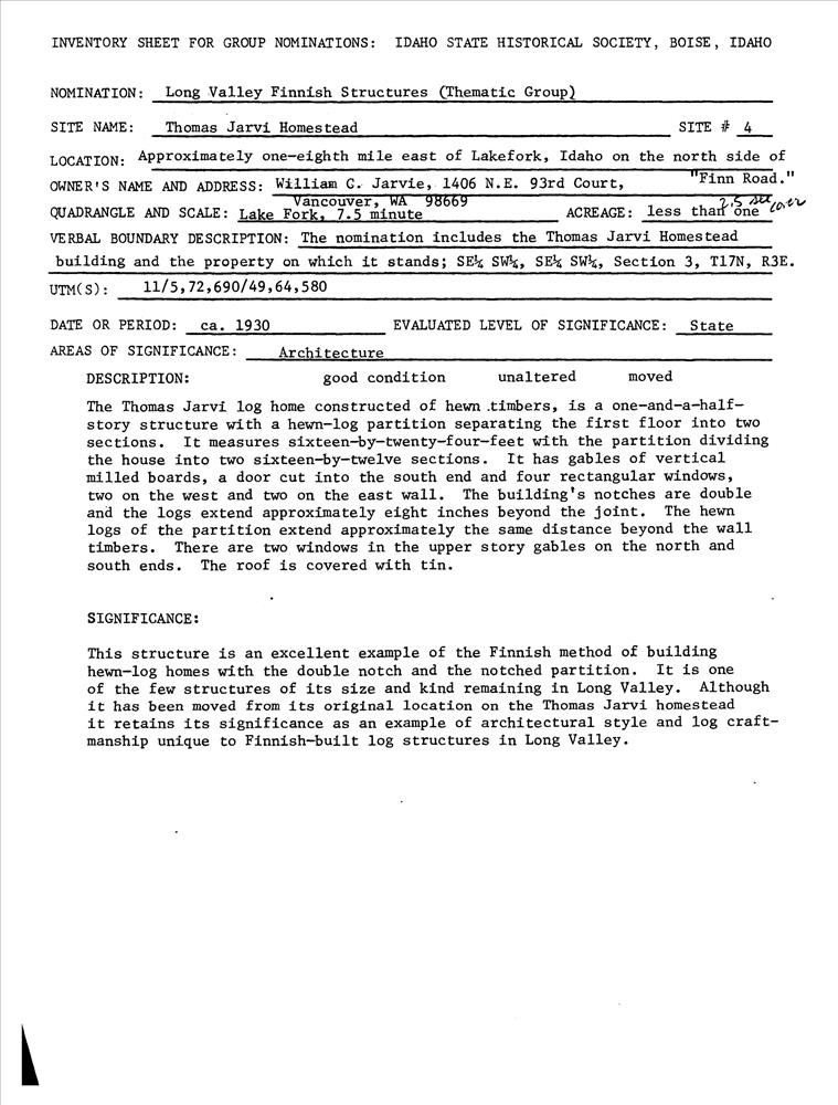 Lake Fork ; E of Lake Fork on Finn Rd.