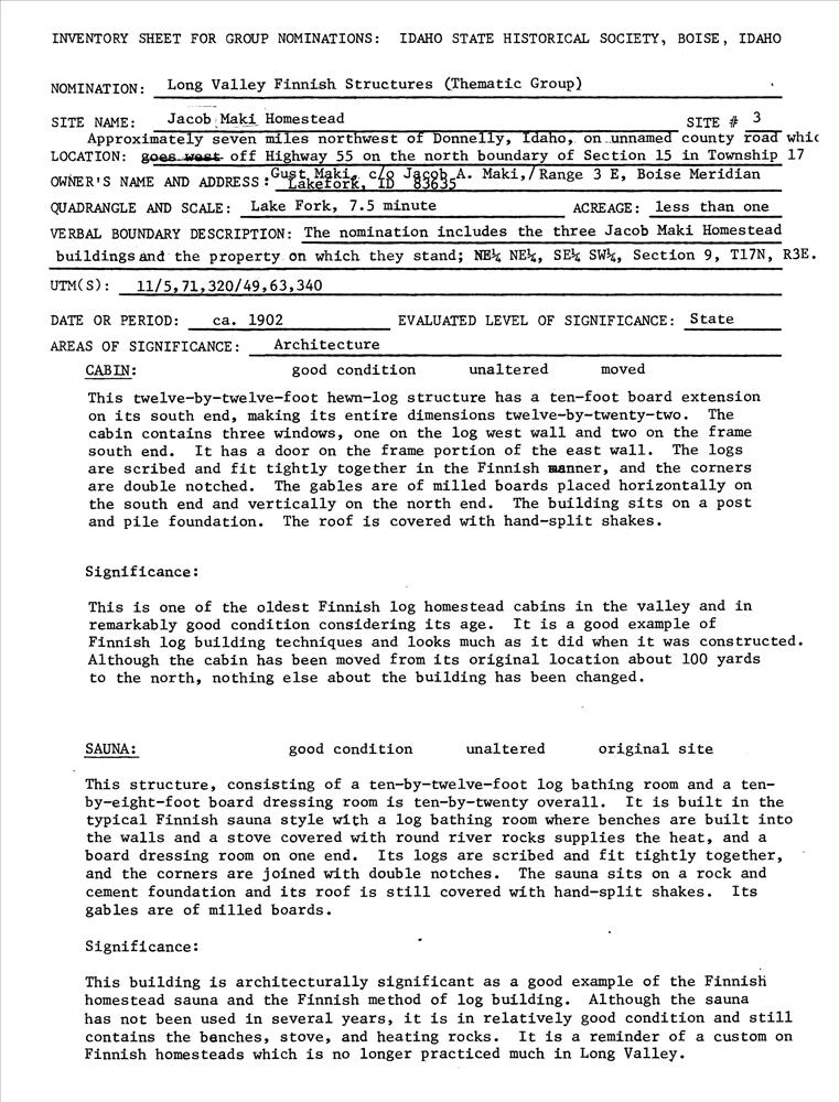 Maki, Jacob, Homestead