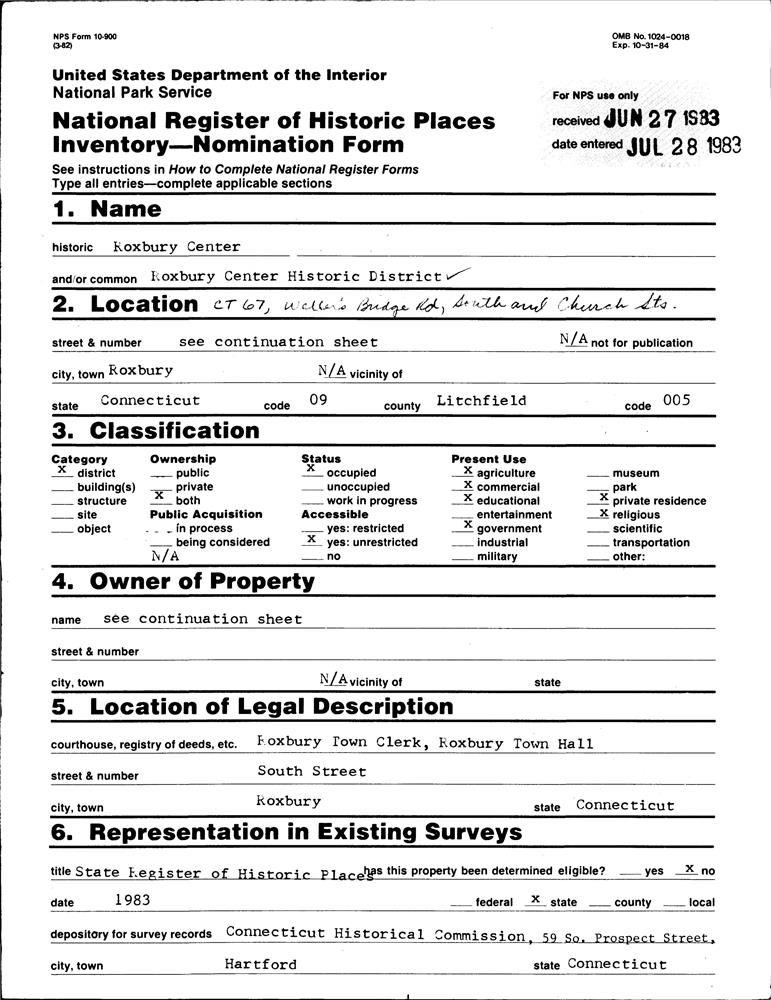 Roxbury ; CT 67, Weller's Bridge Rd., South and Church Sts.
