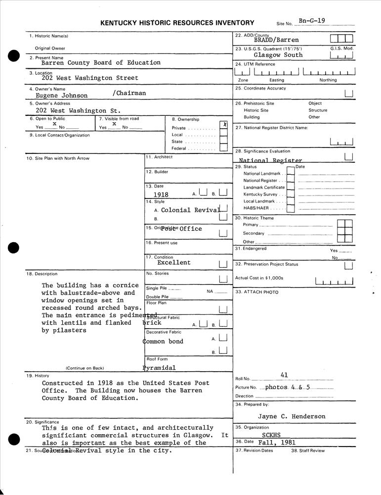 Glasgow ; 202 W. Washington St.