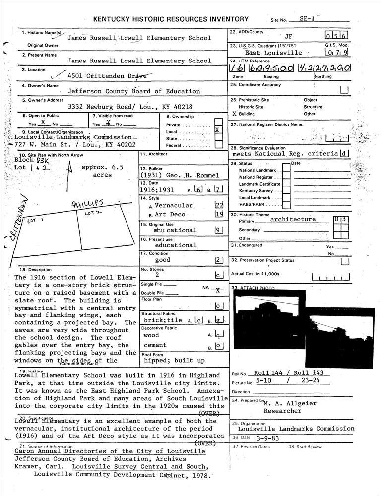 Louisville ; 4501 Crittenden Dr.