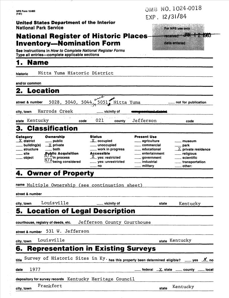 Harrods Creek ; 5028, 5040, 5044, and 5051 Nitta Yuma