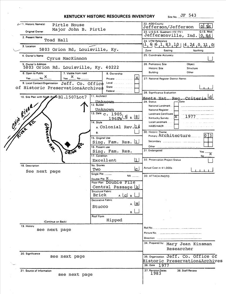 Louisville ; 5803 Orion Rd.