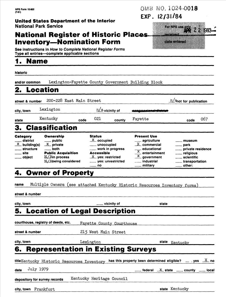 Lexington ; 200-228 E. Main St.