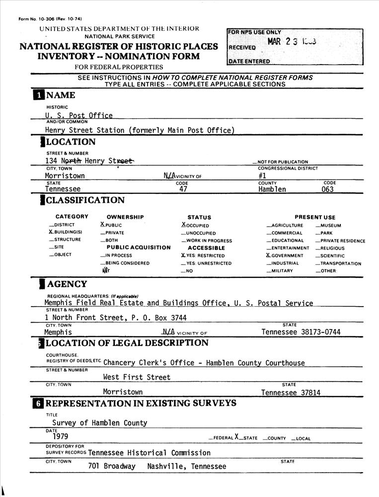 Morristown ; 134 N. Henry St.