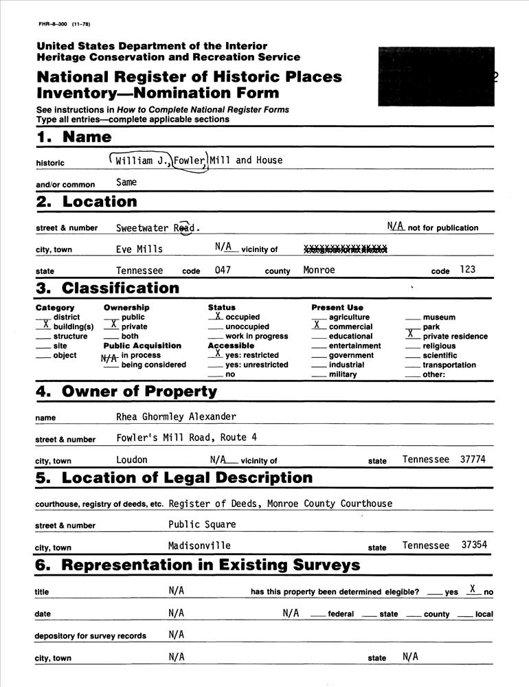 Fowler, William J., Mill and House