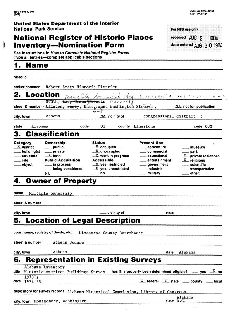 Athens ; Roughly bounded by Louisville and Nashville RR, Forrest, East, and Washington Sts.