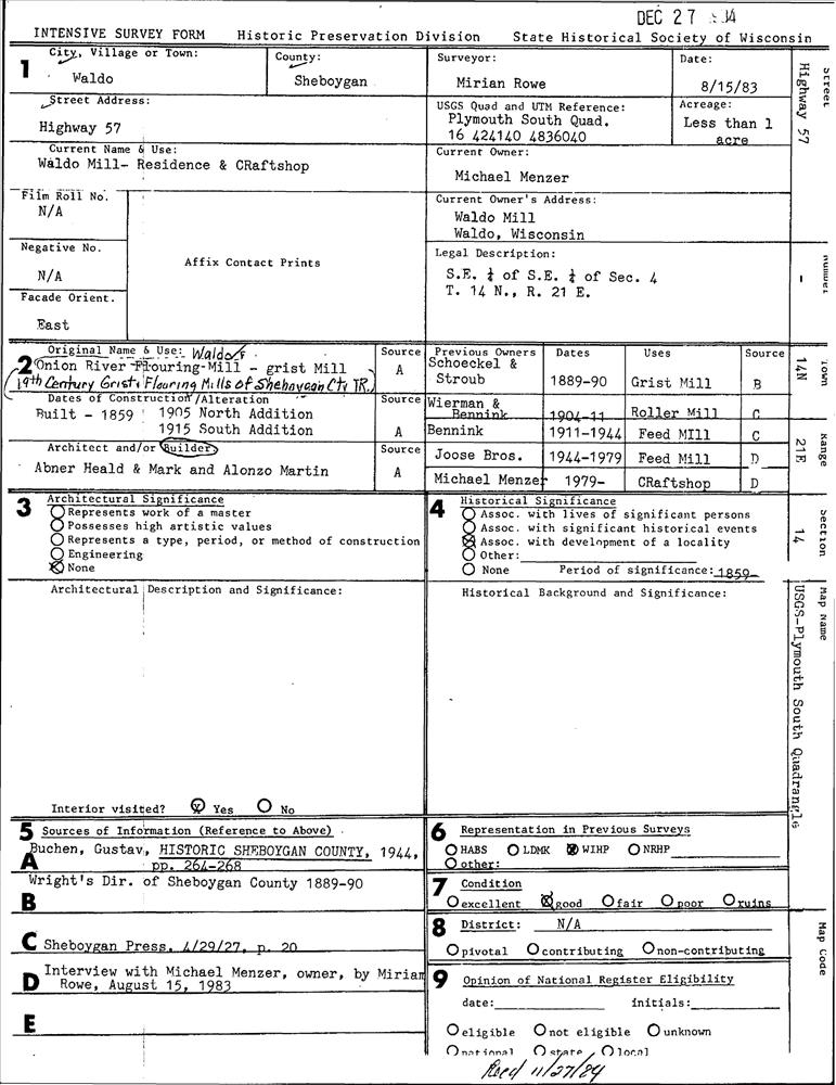 19th Century Grist and Flouring Mills of Sheboygan County TR
