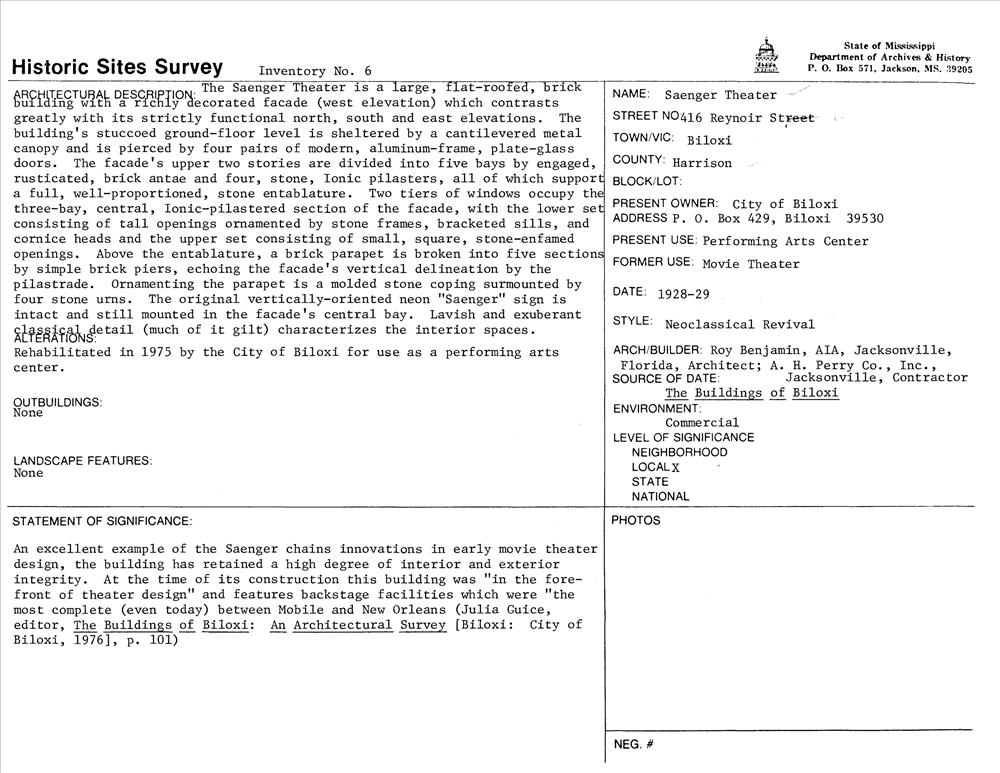 Biloxi ; 416 Reynoir St.