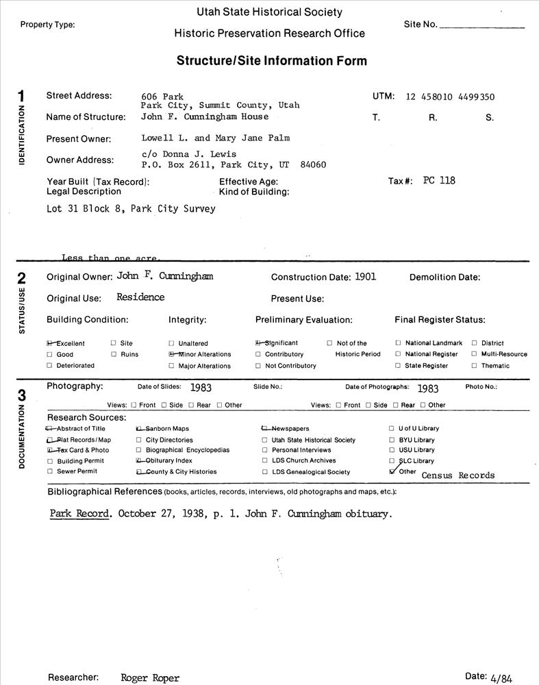 Park City ; 606 Park Ave.