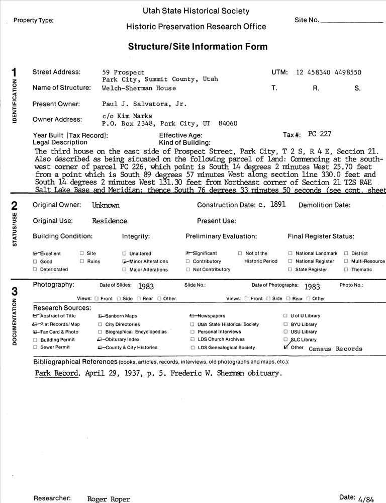 Park City ; 59 Prospect Ave.