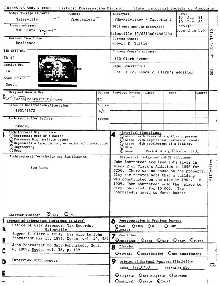 Galesville ; 830 Clark St.