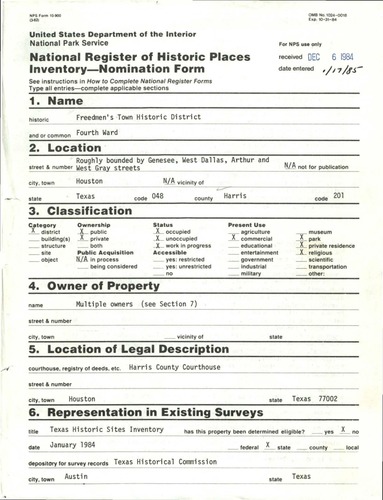 Houston ; Roughly Bounded by Genesse, West Dallas, Arthur and West Gray Streets
