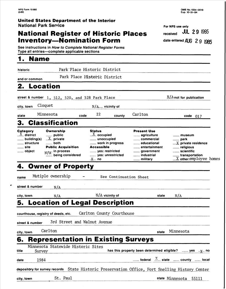 Cloquet ; 1, 512, 520, and 528 Park Pl.