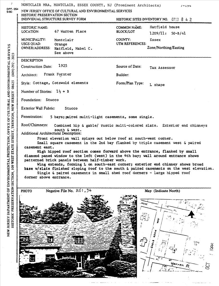 Montclair ; 67 Warren Pl.