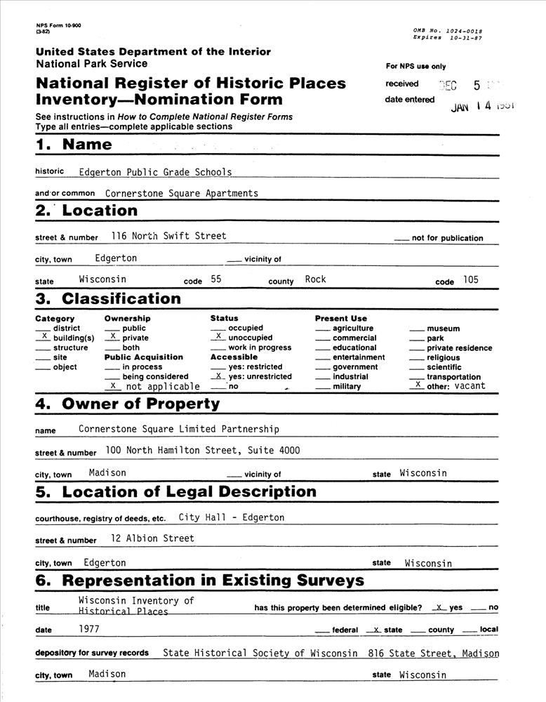 Edgerton ; 116 N. Swift St.