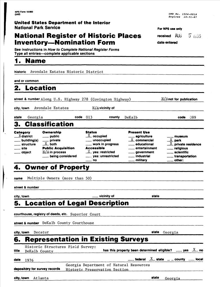 Avondale Estates ; Roughly bounded by Avondale Rd., Lakeshore Dr., Kingstone, Clarendon, and Fairchild Dr., also Lake Avondale