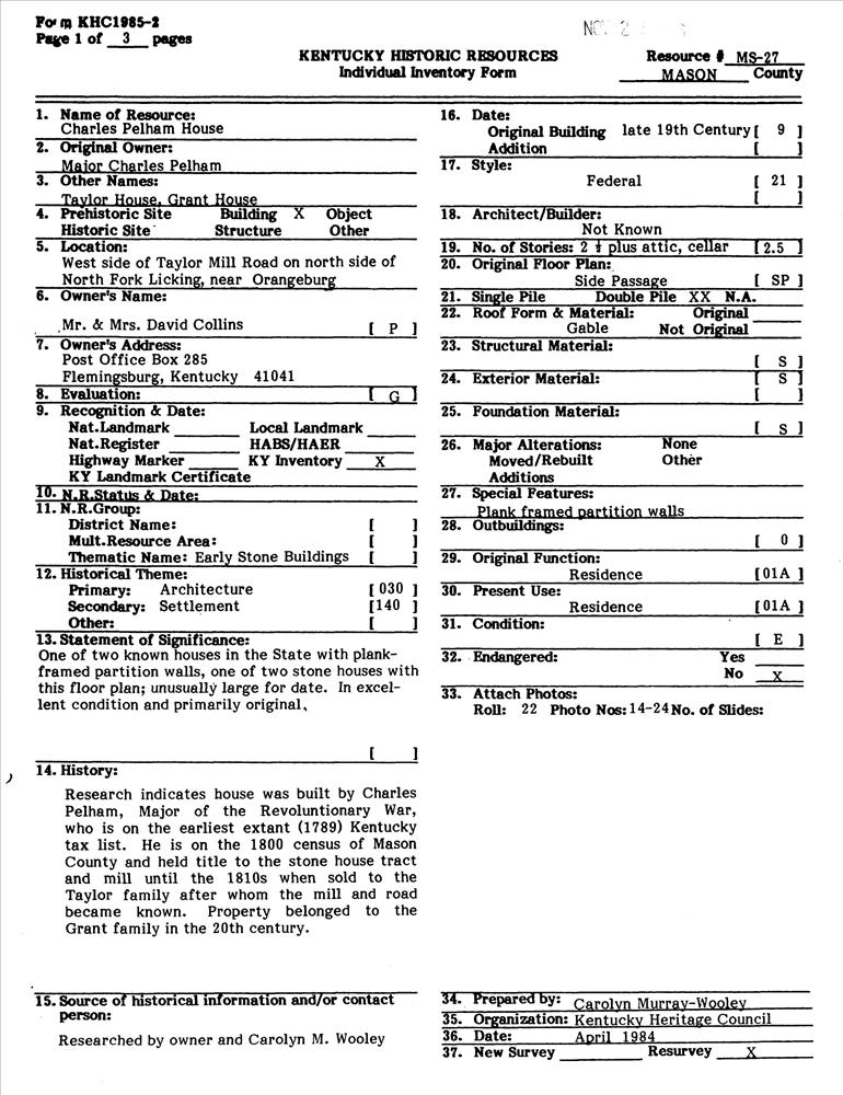 Early Stone Buildings of Kentucky Outer Bluegrass and Pennyrile TR