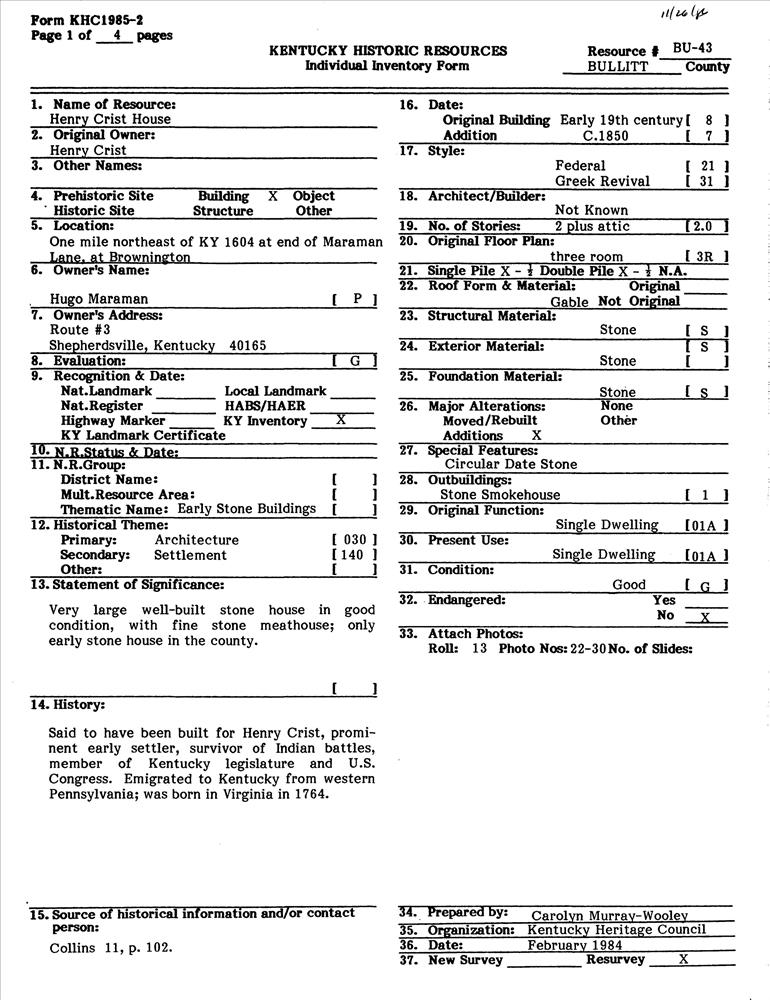 Crist, Henry, House