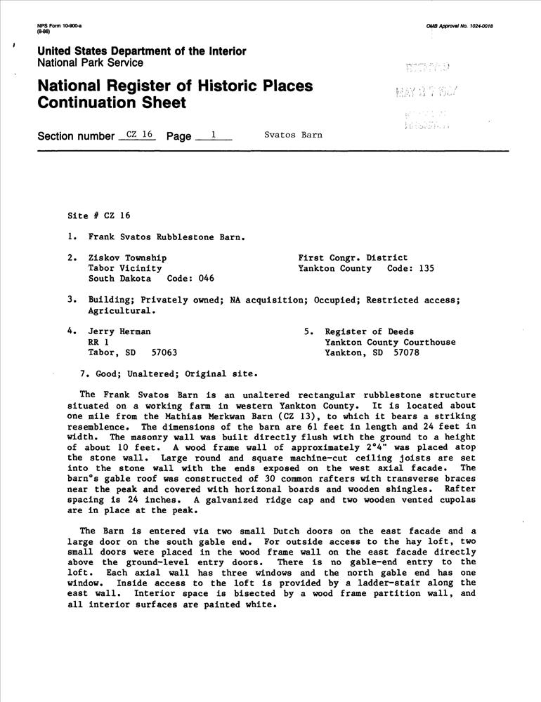 Czech Folk Architecture in Southeastern South Dakota MRA