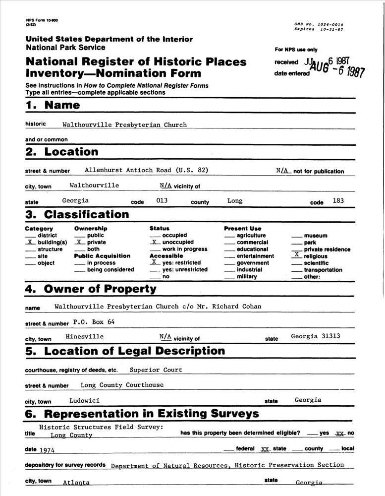 Walthourville ; Allenhurst Antioch Rd.
