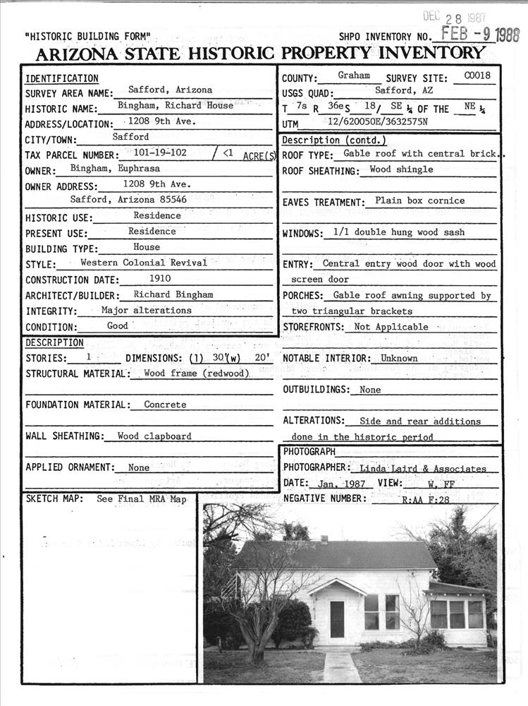 Safford ; 1208 Ninth Ave.