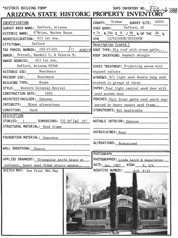Safford ; 615 First Ave.
