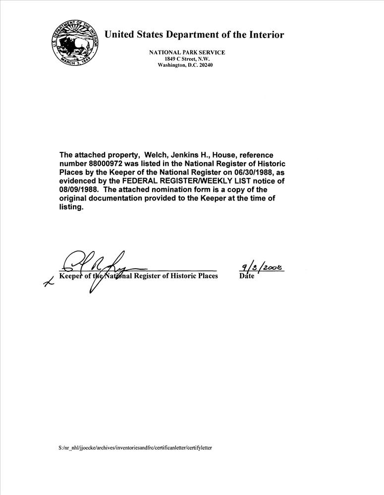 Welch, Jenkins H., House