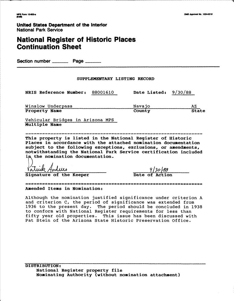 Winslow ; AZ 87 under Atchison, Topeka and Santa Fe RR, milepost 342.1