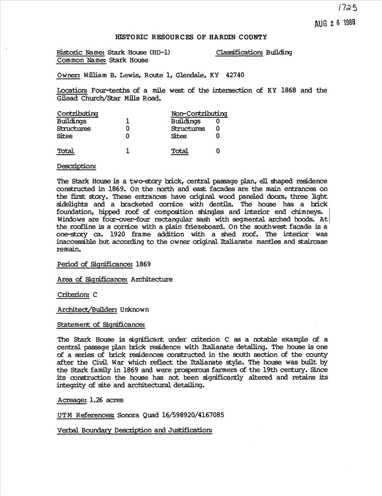 .4 mi. W of jct. of KY 1868 & Gilead Church/Star Mills Rd.