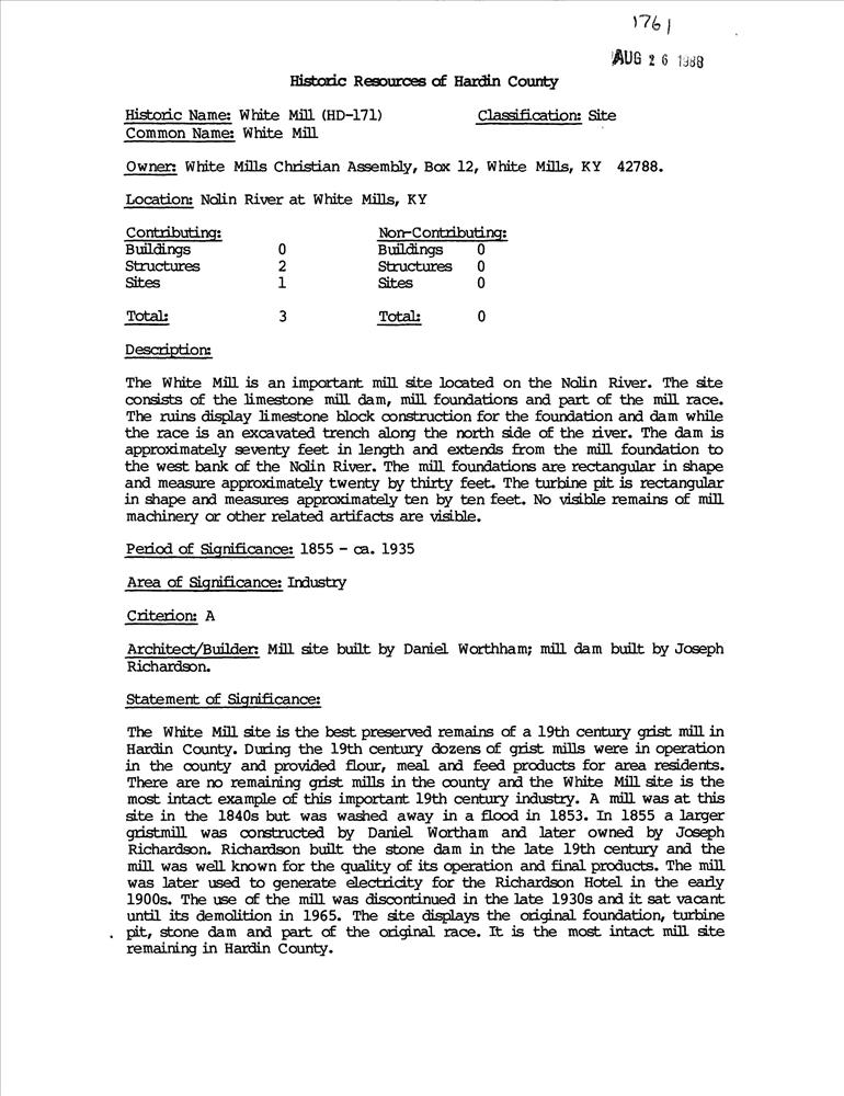 White Mills ; Nolin River