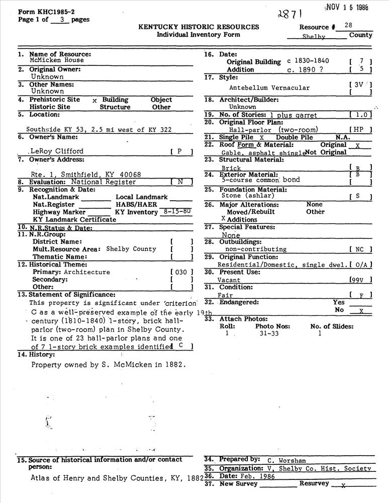 Chestnut Grove ; KY 53, 2.5 mi. W of KY 322