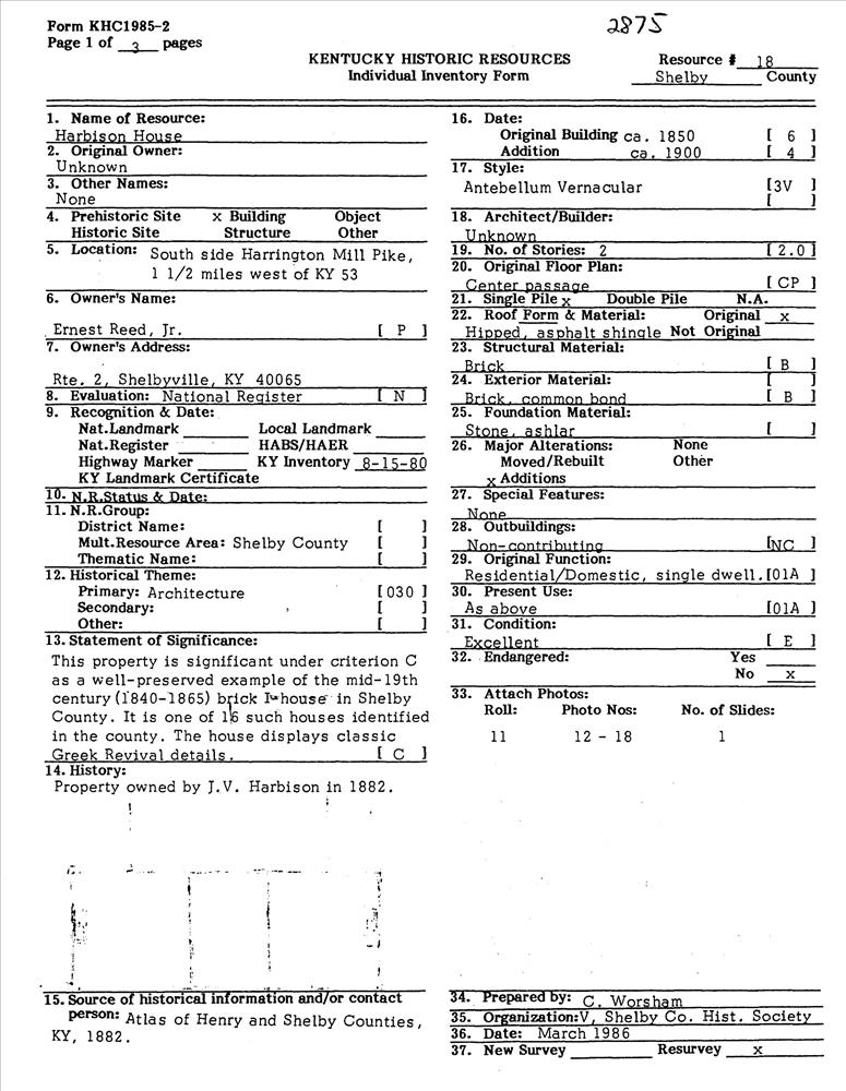 Harrington Mill Pike, 1.5 mi. W of KY 53