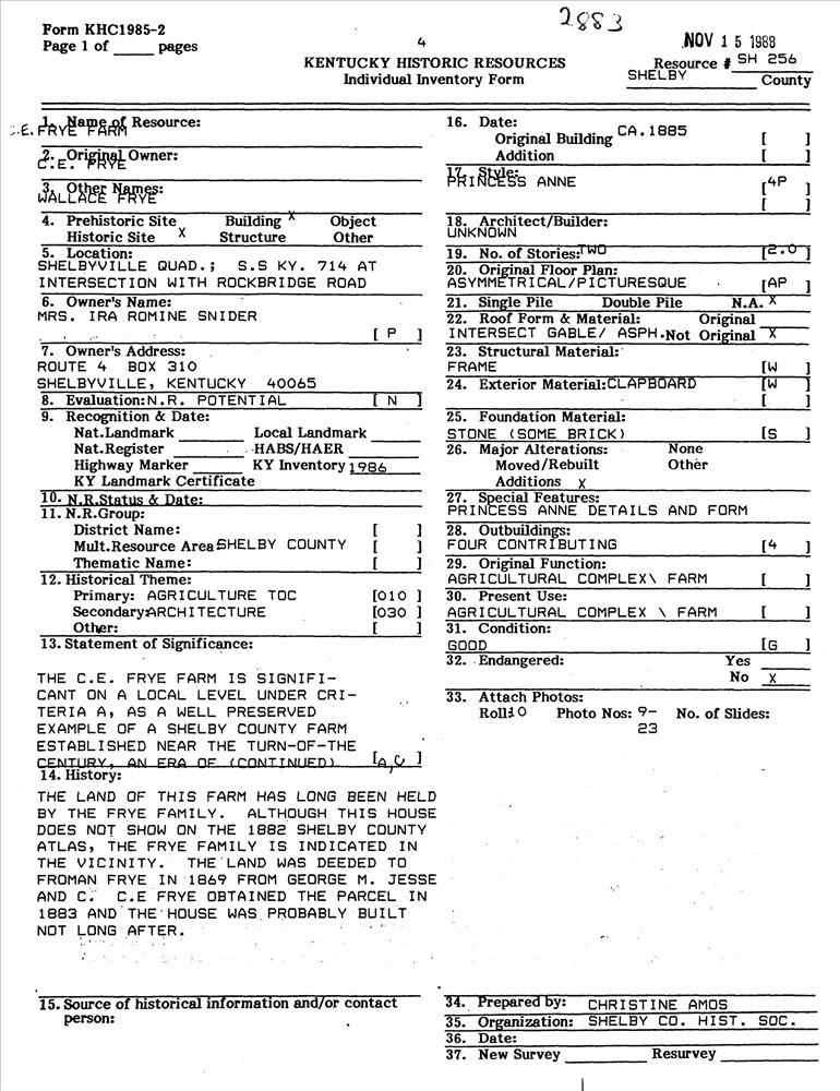 Frye, C. E., Farm