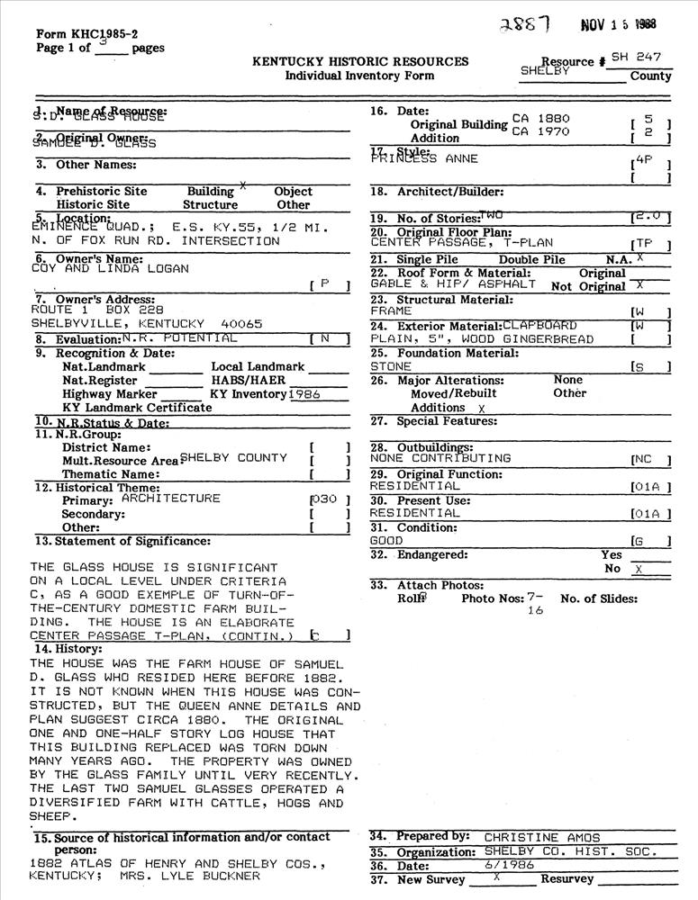 Glass, S. D., House
