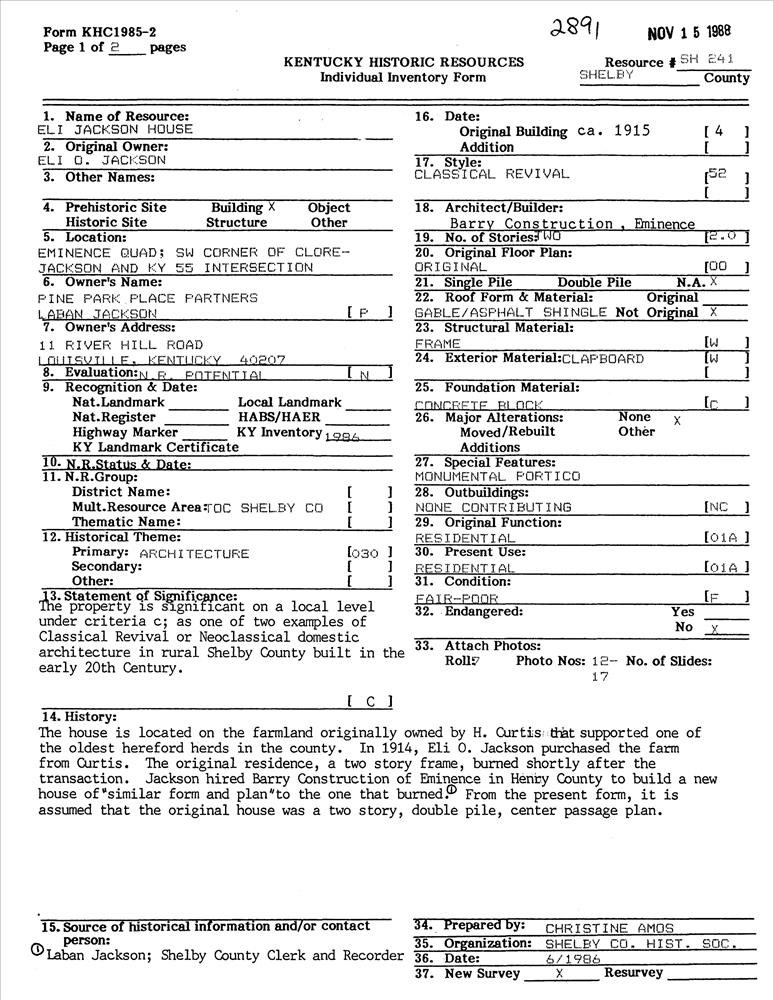 Jackson, Eli, House
