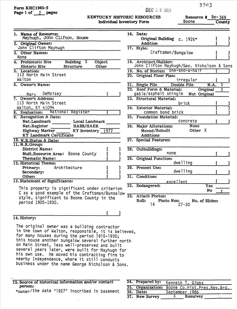 Mayhugh, John Clifton, House